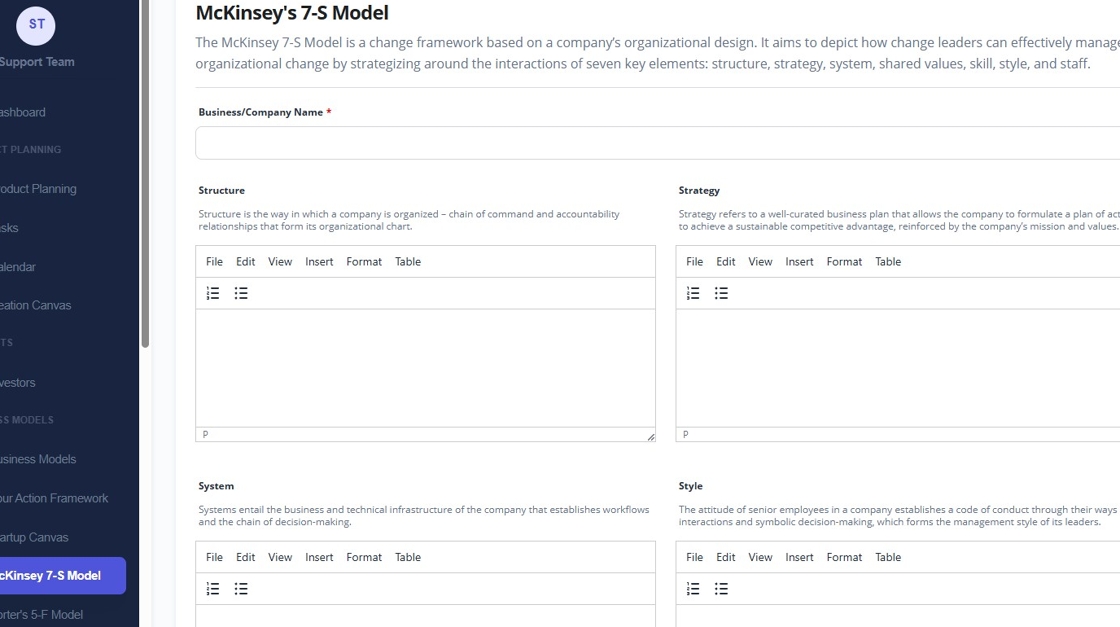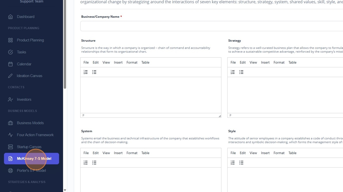 3. Click on new McKinsey 7-S Model.