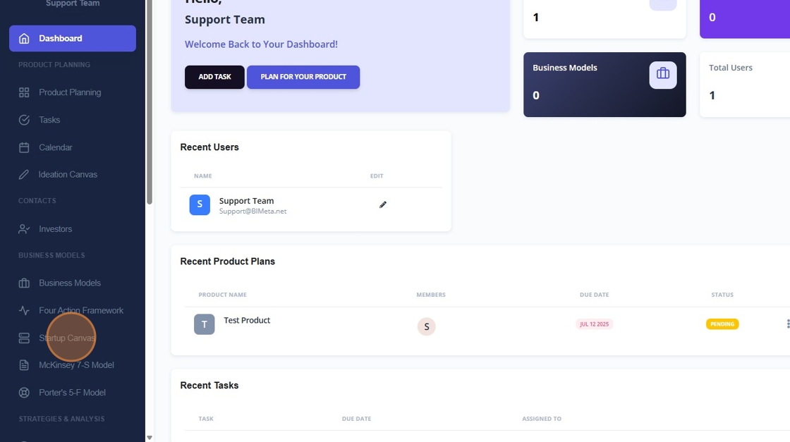 1. Navigate to https://startup.bimeta.net/business-models 2. If you would like to add a new business model, you can go on the left hand side. Click on business models, then click design business model. 3. Enter a business company name. 4. along with ...