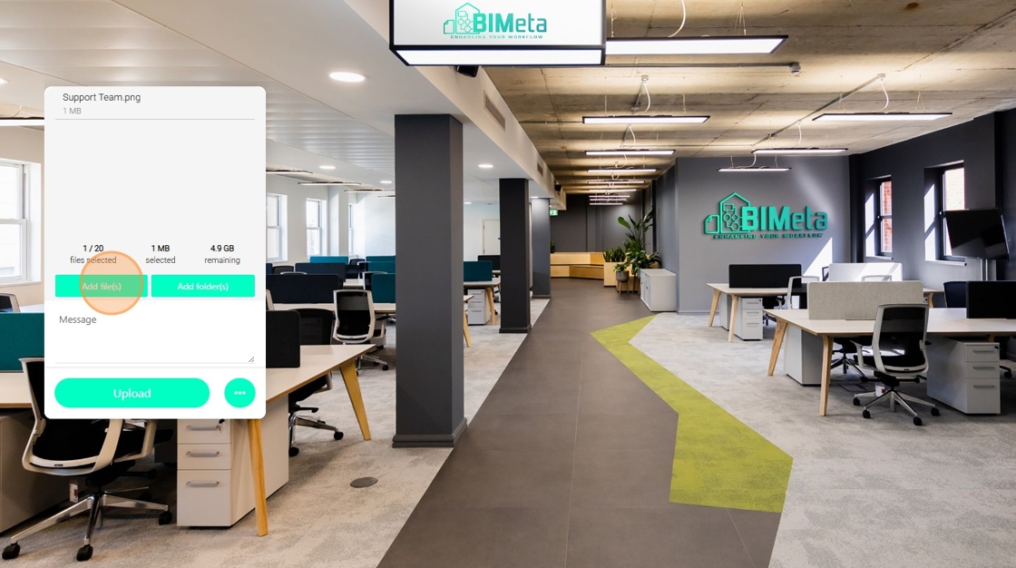 1. Navigate to https://transfer.bimeta.net/home 2. In the event that you would like to email your link directly to a user, you can click on the three dots. 3. Add the files that you need and select "Send using Email". 4. Enable self destruct if you ...